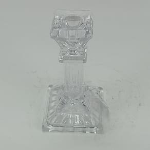 CASTIÇAL Altura: 15,8 cm Largura: 8,3 cm Profundidade: 8,3 cm Peso: 0,44 Kg Diâmetro da Base: 8,3 cm Diâmetro do Corpo: 2,4 cm Diâmetro do Topo: 5 cm Material: Vidro Cor: Transparente