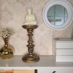 Você também pode colocar velas de cera ou pilar - sem chama - de led, em cima do suporte como um ótimo porta-velas.