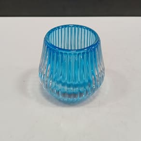 Largura: 7,3 cm Profundidade: 7,3 cm Espessura: ,4 cm Peso: 0,33 Kg Diâmetro da Base: 5,5 cm Diâmetro do Topo: 4,5 cm Material: Vidro Cor: Azul