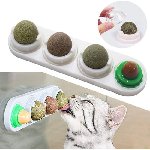 4 peças de brinquedos para gatos e gatinhos Malier, brinquedos comestíveis para gatos Silvervine Ball Lamber, bolas giratórias seguras e saudáveis, brinquedos para mastigar gatos
