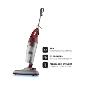 Aspirador de Pó Vertical WAP High Speed Plus 3 em 1 Ganhe mais versatilidade e praticidade nas limpezas do dia a dia com o Aspirador de Pó Vertical WAP High Speed Plus 3 em 1!O Aspirador WAP é leve e portátil, podendo ser utilizado no modo vertical ou como aspirador de mão. Possui 1350W de potência, sendo perfeito para limpezas em diferentes tipos de pisos. Acompanha bico múltiplo e bico de canto para limpeza de difícil acesso. Conta com cabo elétrico de 4 metros, que facilita a limpeza em locais de difícil alcance, como embaixo de camas, armários ou cantos de sofás. O High Speed Plus é compacto, desmontável e muito fácil de guardar. Além disso, conta com tecnologia cyclone que compacta toda a sujeira e aumenta o seu poder se sucção, sendo capaz de aspirar com mais eficiência. Tem filtro HEPA removível e lavável, que dispensa o uso de saco para pó.Vantagens do Aspirador de Pó Vertical WAP High Speed Plus 3 em 1 - Filtro HEPA;- 1350W de potência;- Cabo elétrico de 4 metros;- Tecnologia cyclone. Especificações TécnicasTensão / Voltagem: 127V ou 220V (não é bivolt)Frequência: 60 HzMotor: UniversalClasse de isolação: 2Nível de ruído: 83 dB(A)Vácuo: 134 mbarTipo de filtro: HEPAAspira água: NãoPeso líquido: 1,25 KgDimensões do produto (C x L x A): 25 x 14,5 x 108 cmCor: Vermelho e CinzaAcessórios: 1 Bico Canto; 1 Bico Múltiplo Articulado para tapetes, carpetes ou pisos; 1 Alça Removível para utilização vertical; 1 Filtro HEPA.Componentes: Cabo Elétrico 4 metros; Recipiente Transparente; Alça Removível; Suporte para enrolar o cabo elétrico.Conteúdo da embalagem: Aspirador de Pó Vertical WAP HIGH SPEED Plus + Acessórios + Manual de Instruções.Código WAP: FW009104 (127V) / FW009105 (220V)Garantia: 12 meses.
