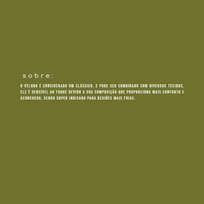 ***Demonstrativo de estampas e cores, compras efetivadas neste anúncio serão automaticamente canceladas.*** Catálogo de Tecidos para Poltronas, Puffs e Sofás-Retrô - D'Rossi Aqui você pode visualizar nossos tecidos em linha, escolha o revestimento ideal para sua Poltrona, puff ou sofá-retrô! Como comprar meu produto com um tecido do catálogo personalizado? 1- Escolha o modelo de poltrona, puff ou sofá-retrô de você deseja comprar; 2- Procure no catálogo o revestimento que você mais gostou, salve o nome dele; 3- Faça a compra diretamente no anúncio do modelo de poltrona, puff ou sofá-retrô que você gostou, independente do revestimento anunciado. 4- Especifique nas mensagens da compra o nome do revestimento que você deseja em seu produto. - Atenção: Os tecidos deste catálogo estão sujeitos à alteração do preço final no produto. - Atenção: As cores dos tecidos pode sofrer variações, devido ao lote e/ou a resolução do monitor e/ou iluminação do ambiente. - Qualquer dúvida nos mande uma pergunta. D'Rossi interiores