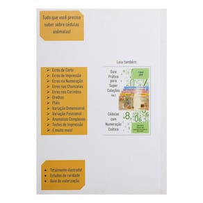 Catálogo Guia Prático Super Coleções: Cédulas Anômalas Vol. 2Este livro se propõe a caracterizar e racionalizar, sempre que possível, as cédulas anômalas encontradas em quatro anos de pesquisas e no contato com dezenas de colecionadores. Como recursos didáticos, são apresentados também alguns testes de impressão, em especial as cédulas da série progressiva. O bom entendimento de como as cédulas são fabricadas é a chave para se entender as anomalias, bem como para diferenciar as peças legítimas das falsas.O que você encontrará no livro?- Processo de fabricação de cédulas- Anomalias relacionadas à marca d'água- Pliés e anomalias relacionadas ao papel- Anomalias relacionadas às impressões de uma cédula- Anomalias relacionadas à numeração- Anomalias relacionadas à chancelas- Anomalias relacionadas aos carimbos- Variações e erros de corte- Orelhas- Anomalias e variações dimensionais- Anomalias complexas e/ou compostas- Anomalias e variações mínimasAventure-se garimpando cédulas de uma forma diferente que irá enriquecer sua coleção.Informações TécnicasAutor: João Sílvio Semolini OlimAno: 2021Páginas: 128Dimensão: L: 15,0cm x A: 21,0cm x P: 0,9cmPaís: BrasilIdioma: Português Marca: João Sílvio Semolin Olim