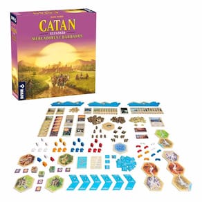 13 terrenos hexagonais 6 cardumes 30 fichas de peixe 36 fichas de mercadoria 6 cartões especiais 20 fichas de comércio 117 cartas 40 figuras de jogo 36 figuras de bárbaro 22 figuras de camelos 40 moedas 1 dado 1 manual