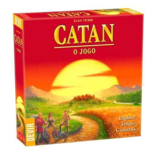 Colonizadores de Catan é um jogo com milhões de fãs apaixonados no mundo todo pela diversão, entretenimento e estratégias que ele possibilita. Situada historicamente na Idade Média, Catan é uma ilha a ser colonizada pelos jogadores, quem devem, a cada rodada, construir estradas, vilas e cidades, negociando as matérias-primas do local: madeira, minério, trigo, tijolos e ovelhas. Ladrões estão à solta e atrapalham seus planos de conquista e poder. As Habilidades de negociar, prever e criar, aliadas a um pouco de sorte, farão de você o colonizador mais bem-sucedido da ilha. Venha para Catan, encare este desafio e sinta o prazer de ser o soberano de uma pequena ilha que se espalhou pelo mundo! Componentes: 19 terrenos hexagonais 06 peças de moldura 18 fichas numeradas 95 cartas de matéria prima 25 cartas de desenvolvimento 06 cartas especiais 96 figuras de jogo 01 figura ladrão 02 suportes de cartas 02 dados 01 manual de regras