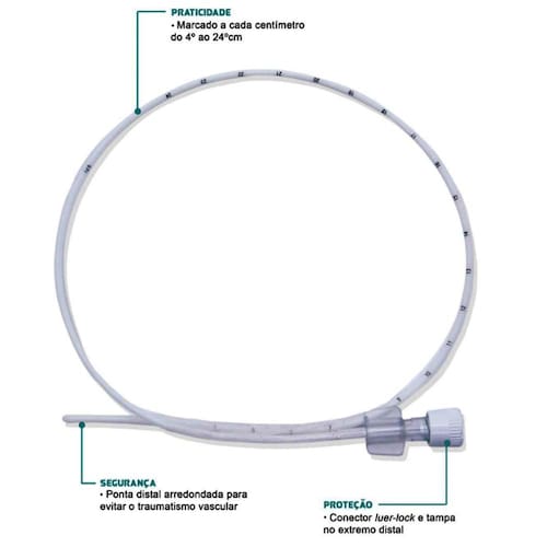 Conector luer-lock e tampa no extremo distal.