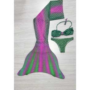Cauda de Sereia Completa Super Confortável para Nadar Vitória - COR:Verde c/ Roxo;,TAMANHO:M;