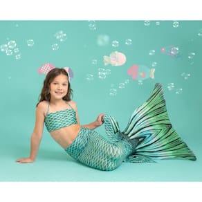 • As caudas são indicadas para crianças acima de 7 anos que já nadam muito bem, acompanhadas de um adulto. • Informações de segurança constam no manual que acompanha a cauda. • O kit contém uma cauda de lycra, biquíni completo e nadadeira básica exclusiva e patenteada Sirenita® com sapatilha regulável. • Composição da Cauda de Sereia: 90% Poliéster 10% Elastano / Composição do forro: 100% poliamida