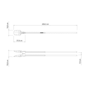 - Altura: 16,6 cm - Largura: 19,6 cm - Comprimento: 2,06 m