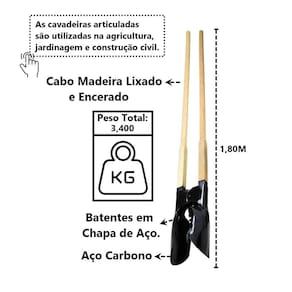 Cavadeira Light Articulada Cabo em Madeira Encerado 180cm, a cavadeira articulada tem esse nome em função da articulação que se destaca na sua extremidade responsável pelo trabalho de escavação. Formando uma espécie de bico, a ferramenta abre e fecha como um tipo de tesoura, ?abocanhando? porções de terra conforme é inserido no solo. A diferença da light para light tucano é o bico da boca da cavadeira, a light tucano tem o bico mais fino que a light.