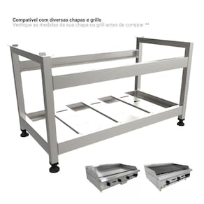 Características Técnicas: Altura ideal para ergonomia: cozinhe sem se curvar, prevenindo dores nas costas e fadiga Estrutura robusta em aço inox: resistente à corrosão e fácil de limpar Compatível com diversas chapas e grills (Verifique as medidas da sua chapa ou grill antes de comprar) Maior conforto e ergonomia no trabalho Montagem descomplicada e garantia de estabilidade Prateleira inferior destinado ao armazenamento de utensílios de cozinha Pés niveladores de borracha antiderrapante que facilitam o ajuste e o melhor posicionamento do cavalete