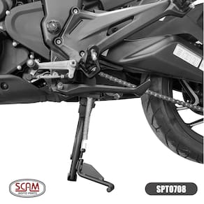 Desenvolvido para elevar a roda traseira da motocicleta em relação ao chão, o Cavalete Central SCAM é uma excelente opção para trocas de pneus, limpeza, lubrificação da corrente e outros serviços de manutenção, facilitando o trabalho com a motocicleta nessas situações. Com design discreto e funcional, pode ser acionado com facilidade e não interfere na ciclística da motocicleta.