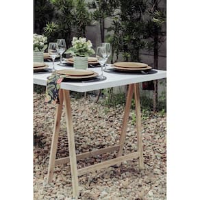Em muitas situações cotidianas precisamos adequar nossos espaços cada vez mais limitados. Itens que otimizam os ambientes, que proporcionam praticidade, conforto e leveza são cada vez mais importantes. Aos poucos armários e prateleiras, por melhores que sejam, não fazem agregam o suficiente, os produtos da linha Eco Bel, são ideais para você e sua casa. O cavalete de madeira é um elemento bem versátil, podendo ser utilizado em salas, quartos, escritórios, varandas, garagens, jardins e áreas de festas e lazer. Além de poder ser montado e desmontado com facilidade e sem ocupar espaço. Se preferir, aposte nos cavaletes de cor natural, feitos de madeira, mas que podem ser pintados na tonalidade desejada, para harmonizar com o cômodo onde será colocado. Sem precisar de montagem, é de fácil manuseio, utilização e transporte. Acompanha as dobradiças e a corrente de fixação. Dimensões do produto montado: 50x32x73,5 cm Capacidade: 120Kg Material: Madeira de Pinus de reflorestamento natural. Quantidade: 01 unidade por embalagem Garantia de 30 dias para defeitos de fábrica Observações importantes: Imagens meramente ilustrativas As tonalidades de cores podem variar de acordo com o monitor, celular ou até mesmo percepção Ean: 7896777985120