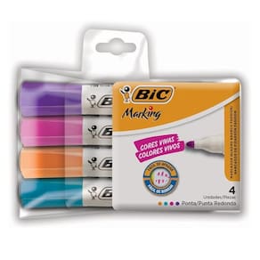 01 Kit com Marcadores Bic Marking Azul claro, Rosa, Roxo e Laranja