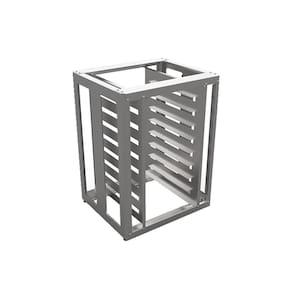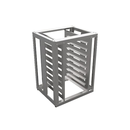 Características Técnicas: Estrutura em aço inox Sapatas plásticas reguláveis até 4cm Espaço entre níveis de 8cm, com borda apoio de 2cm 8 Esteiras 35 x 35cm