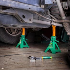 Informações adicionais: Capacidade de carga: 3T Altura com barra de apoio recolhida: 30,3 cm Altura com barra de apoio estendida: 43,8 cm Largura: 20,32 cm Comprimento: 17,78 cm Peso Unitário: 7,7 kg