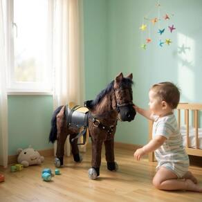 Cavalinho de Rodinha Fabricado em madeira reflorestada e revestido com pelúcia, o nosso cavalinho possui detalhes encantadores: acessórios no peitoral, rédeas, suporte de mãos na sela Todos os tecidos utilizados são antialérgicos, garantindo mais segurança e tranquilidade para os pais e muito mais conforto para as crianças Ele também contribui para o desenvolvimento e o equilíbrio do seu filho. Todos nós queremos crianças saudáveis e fortes e nada melhor do que alcançar isso com muita diversão Produto certificado pelo Inmetro e com O melhor investimento para o desenvolvimento e diversão do seus filhos. Nosso produto é exclusivo e apenas algumas unidades estão disponíveis. Caso não fique satisfeito com o produto, oferecemos uma de 60 dias para devolução e ressarcimento do valor pago Este produto tem todas as características que você deseja. Caso tenha algum problema para usar o produto é só entrar em contato conosco que um consultor irá te atender prontamente. Comece a criar memórias inesquecíveis nos seus filhos, dê presentes que eles realmente gostam Venha conhecer Nossa Linha de Brinquedos Tamanho e dimensões do cavalinho: 56 cm de altura 56 cm de comprimento Para crianças de 1 a 6 anos Cavalinho de Rodinha Os acessórios podem variar as cores por ser um produto artesanal Pelúcia Anti alérgica. Aproveitem o preço promocional de lançamento Atenção : O estribo onde se coloca o pé e somente para deixar o brinquedo realista, ele não suporta o peso da criança para subir no cavalo, tornando uma decoração do cavalo Quem viu este produto também comprou Homologação Inmetro: IP-BRI-9333/2018-13 Marca: Não Informado