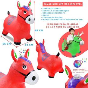 O Cavalinho Upa Upa possui leds e som de cavalinho, tornando a brincadeira ainda mais divertida. As luzes e o som garantem horas de entretenimento e diversão para os pequenos.