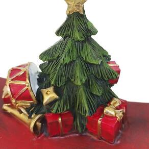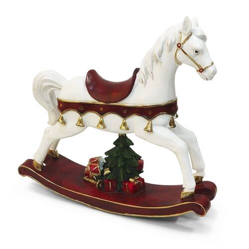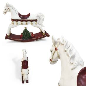O Cavalo de Balanço Natalino em Resina é um clássico que adiciona charme e nostalgia à decoração de fim de ano. Com acabamento detalhado, o cavalo branco possui sela em tom vermelho, delicados sinos dourados e base em estilo antigo. A árvore de Natal com presentes na parte inferior complementa o visual encantador.