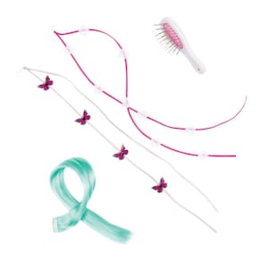 Ele tem uma longa e sedosa crina e cauda loira que são perfeitas para escovar e pentear. A escova de ponta arredondada incluída facilita manter o pelo longo do cavalo livre de emaranhados. Adicione uma das extensões de cabelo para um toque de cor aos seus estilos, ou use as fitas de cabelo de borboleta ou flor para dar um toque único ao estilo do seu cavalo. Essas extensões e fitas também podem ser usadas no cabelo das crianças também! Boneca vendida separadamente.