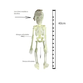 Não perca a oportunidade de adicionar um toque especial ao seu Dia das Bruxas. Garanta agora mesmo a sua Caveira Articulada de 40cm com Luz e Som e deixe a sua decoração ainda mais incrível.