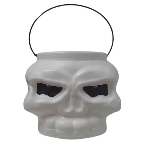 Caveira balde - halloween10 unidadebalde caveira halloween em plástico, com adesivo colado nos olhos. Ideal para colocar doces ou salgados e compor lindas decorações a mesa ou presentear os convidados da sua festa.Informações do produtomaterial: plástico e adesivos;medida da caveira: 16 x 16cm;medida da alça: 30cm;medida da parte aberta: 10cm;peso: 100g;cor: branco;marca: bellavalidade indeterminada;indicado para crianças acima de 3 anos.Atenção - não acenda vela dentro da caveira.