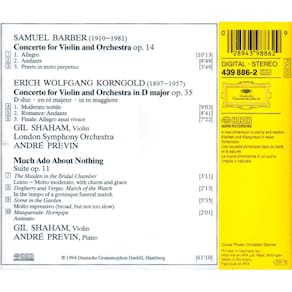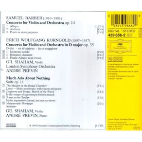 Barbeiro: Concerto para violino Op14; Korngold: Much Ado about Nothing Op11 (veja a página de detalhes da Amazon) ASIN: B000001GLX Encadernação: CD de áudio UPC: 028943988629