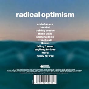 Inspirado na autodescoberta de Dua, Radical Optimism é um álbum que explora a pura alegria e felicidade de ter clareza em situações que antes pareciam impossíveis de enfrentar. As despedidas difíceis e os começos vulneráveis que antes ameaçavam esmagar sua alma, tornam-se marcos à medida que você escolhe o otimismo e começa a se mover com graça pelo caos. Infundido com a energia da cidade natal de Dua, Londres, a atitude do álbum incorpora a crueza, honestidade, confiança e liberdade do Britpop dos anos 90. Radical Optimism transporta seu ouvinte para um mundo pop sonhador rico em musicalidade, liricamente sem remorso e sonoramente libertador.. A potência pop global vencedora do 3x GRAMMY e do 7x Brit Award trabalhou com uma equipe de colaboradores principais ao longo do projeto, incluindo Caroline Ailin, Danny L. Harle, Tobias Jesso Jr. e Kevin Parker.