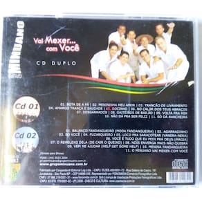 Cd Grupo Minuano – Vai Mexer... Com Você (Duplo) NOVO, É LACRADO DE FABRICA!! Faixas Disco: 1 1-1 Bota De A Pá 1-2 Menininha Meu Amor 1-3 Trancão De Livramento 1-4 Amargo Trança E Saudade 1-5 Docinho 1-6 No Calor Dos Teus Abraços 1-7 Desgarrados 1-8 Gaiteiros De Bailão 1-9 Volta Pra Mim 1-10 Não Dá Pra Ser Feliz 1-11 Só Dá Rancheira 2-1 Balanço Fandangueiro (Moda Fandangueira) 2-2 Agarradinho 2-3 Só Você 2-4 Fuzarqueiro 2-5 Loco Pra Saracotear (Vanera-Nera) 2-6 Você É Tudo Que Eu Pedi Pra Deus (Magia) 2-7 O Remelexo Dela (De Cair O Queixo) 2-8 Nóis Enverga Mas Não Quebra 2-9 Vem Me Ajudar (Help Get Some Help) 2-10 Menina Fandangueira 2-11 O Minuano Vai Mexer Com Você Marca: Não Informado