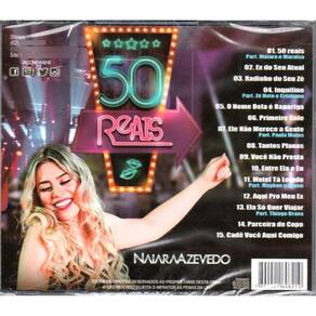 Nome do artista NAIARA AZEVEDO Nome do álbum 50 REAIS Formato Físico Formato do álbum CD CD:01 - 50 Reais - Part. Maiara e Maraisa02 - Ex do Seu Atual03 - Radinho Do Seu Zé04 - Inquilino - Part. Zé Neto e Cristiano05 - O Nome Dela e Rapariga06 - Primeiro Gole07 - Ele Não Merece A Gente - Part. Paula Mattos08 - Tantos Planos09 - Você Não Presta10 - Entre Ela e Eu11 - Motel Ta Lotado - Part. Maykow e Bruno12 - Aqui Pro Meu13 - Ela Só Quer Viajar - Part. Thiago Brava14 - Parceira De Copo15 - Cadê Você Aqui Comigo