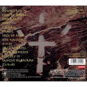 Cd soulfly - 3 Produto nacional - embalagem em jewelbox caixa acrílica + slipcase luva especial + encarte com 16 páginas incluindo as letras das músicas - lançamento mundial 25/06/2002 3 é o terceiro álbum de estúdio da banda, lançado em 2002 pela roadrunner records A música one conta com a participação vocal de christian machado, do ill nino, e usa o título como a primeira palavra de uma das orações de duas palavras por verso: uma alma / um coração / um homem / uma verdade / uma tribo / uma vida / um deus. L.O.T.M sigla para last of the mohicans é uma canção de metal com temática indígena americana, que leva o nome do romance homônimo de 1826. Brasil é uma canção de metal brasileira com berimbau e percussão executada por cavalera. One nation, um cover originalmente do sacred reich, conta com o guitarrista wiley arnett e o baterista greg hall, do sacred reich, como músicos convidados. 09-11-01 é um minuto de silêncio pelos ouvintes para homenagear as vítimas dos atos terroristas de 11 de setembro de 2001 no world trade center. Tree of pain é uma homenagem ao falecido enteado de cavalera, dana Zumbi e soulfly iii são canções de world music. Tracklist: 01 - downstroy 04:24 02 - seek 'n' strike 04:26 03 - enterfaith 04:46 04 - one 05:21 05 - l.O.T.M. 02:35 06 = brasil 04:56 07 - tree of pain 08:19 08 - one nation 03:42 09 - 9-11-01 01:00 10 - call to arms 01:23 11 - four elements 04:20 12 - soulfly iii 05:00 13 - sangue de bairro 02:18 14 - zumbi, blank space, outro 05:41 Marca: Não Informado Ean: 0016861845520