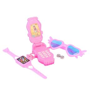 Celular Infantil com Relógio e óculos - Kit Acessórios de brinquedo para crianças, com óculos de coração, relógio falso e telefone com cordão;\n- Acompanha 2x baterias para o telefone Fashion;\n- Medidas: Óculos 13x4cm / Telefone: 10x3cm / Relógio: 18x3cm;\nEspecificações:\nMarca : ARK\nTipo de material : Plástico\nCores ou Estampa : Rosa\nDimensões do Produto : 23 X 17 X 3 CM\nDimensões da Embalagem : 23 X 17 X 3 CM\nPeso Bruto (Gramas) : 0.069 Marca: Não Informado