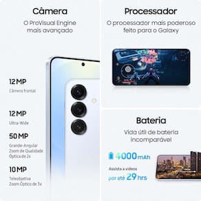 Celular Samsung Galaxy S25 5G, 128GB, 12GB RAM, Galaxy AI, inteligencia artificial, comando e tradução de voz, Câmera Tripla de 50+12+10, Tela Grande de 6.2"" Bateria 4000mAh, Dual Chip, eSim;