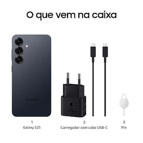 Celular Samsung Galaxy S25 5G, 256GB, 12GB RAM, Galaxy AI, inteligencia artificial, comando e tradução de voz, Câmera Tripla de 50+12+10, Tela Grande de 6.2"" Bateria 4000mAh, Dual Chip, eSim;