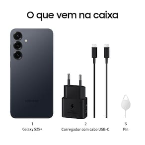 Celular Samsung Galaxy S25+ 5G, 256GB, 12GB RAM, Galaxy AI, inteligencia artificial, comando e tradução de voz, Câmera Tripla de 50+12+10, Tela Grande de 6.7" Bateria 4900mAh, Dual Chip, eSim; A Samsung apresenta o mais novo lançamento da linha S. Seu verdadeiro aliado AI, o Galaxy S25 é o novo celular com o poder da nova geração da inteligência artificial. Tenha em suas mãos uma nova experiência com Galaxy AI com seus novos recursos. Eleve o seu dia a dia, com assistência rápida e completa com os novos recursos de IA mais avançados, como traduções em tempo real, geração de texto e imagens, tudo isso com maior rapidez e privacidade, graças à execução de tarefas diretamente no dispositivo. Novas formas de realizar suas tarefas, se divertir, criar e cuidar da sua saúde. Um celular AI totalmente novo que auxilia sua vida diária com conversas em linguagem natural.