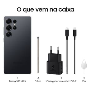 Disponível nas cores Titânio Preto, Titânio Cinza, Titânio Prata e Titânio Azul, o Galaxy S25 Ultra combina beleza, durabilidade e tecnologia. Para facilitar a migração do dispositivo antigo, o aplicativo Smart Switch permite transferir fotos, contatos, configurações e muito mais de forma simples.