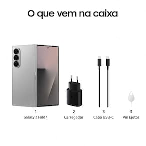Celular Samsung Galaxy Z Fold7 com tela dobrável de 8.0" AMOLED Dinâmico 2x (Aberto) e 6.5" AMOLED Dinâmico (Fechado), 512GB, 12GB de RAM, Câmera Tripla Traseira de 200MP (Dual Pixel, OIS) + 12MP (Ultra Wide) + 10MP (Telefoto, OIS) Frontal de 10MP (Aberto), Frontal de 10MP (Dual Pixel) (Fechado), Bateria de 4400mAh com carregamento super-rápido de 25W, Dual Chip, Android 16 Chegou o lançamento que vai revolucionar o mercado. Samsung apresenta o Novo Galaxy Z Fold7, é o smartphone mais fino e mais leve do que nunca, projetado para multitarefa e melhor experiência de visualização, desdobre sua produtividade. Redesenhado para ser o Fold mais fino e leve já feito. O Z Fold7 conta com um novo design inovador, fino e leve que torna o uso do dia a dia mais confortável. Tamanho da tela otimizado, sendo sua tela principal de 8,0" e tela externa de 6.5". Tela maior para facilitar a digitação e utilização mais confortável. Dobre para ter o tamanho de um celular e abra para ter uma tela ampla semelhante a um tablet. Sincronize os conteúdos da tela principal para tela externa. Produtividade maximizada com tela dividida em um display maior. Com a câmera de alta resolução de 200 MP, o Z Fold7 permite que você capture momentos únicos em todas as condições de iluminação. Desfrute da edição em uma tela maior, detalhe nítido em cada clique: clareza equivalente à do Galaxy S25 Ultra em cada imagem fotografada. O primeiro Galaxy Z Fold com o Modo Macro com foco automático, trazendo fotos nítidas à qualquer distância. Fotos 56% mais brilhantes, em comparação ao Z Fold6. Abra o Galaxy Z Fold7 para mostrar para quem está sendo fotografado exatamente como você está vendo no visor. Com a Câmera frontal com ângulo maior de 10MP permite que você capture selfies em grupo, impecáveis com um campo de visão maior. Tenha visão mais ampla com detalhes mais nítidos. Não vamos esquecer dos vídeos: o Galaxy Z Fold7 permite que você faça vídeos mais nítidos com menos ruído, dia ou noite com o ProVisual Engine de última geração. Vídeos noturnos mais vívidos e com mais detalhes com Nightography aprimorado. Processador exclusivo Galaxy, personalizado para o melhor desempenho, Qualcomm Snapdragon® 8 Elite for Galaxy (3 nm). O Galaxy Z Fold7 te acompanha em todos os momentos com bateria para o dia todo de 4.400 mAh. Suporta o carregamento super-rápido de até 25W, sendo assim você não precisa passar muito tempo ao lado da tomada. O Gemini e Gemini Live, ferramentas de AI do Google, estão presentes no seu Galaxy Z Fold7. Com a ação integrada entra aplicativos, você pode fazer múltiplas tarefas sem trocar de aplicativos. Você também pode ter uma visualização dividida para insights mais profundos e detalhados. O Gemini Live conta com os recursos: - Gemini Live com câmera: aponte sua câmera para qualquer coisa e converse naturalmente para ter respostas instantâneas sobre o que está sendo capturado. - Gemini Live com compartilhamento de tela: compartilhe o que você tem na tela e tenha ajuda imediatamente. Agora com a nova One UI 8.0, permite você receba sugestões em tempo real com base no conteúdo na tela. Interface atualizada da tela de bloqueio, inicial e aplicativos. Experiência de uso otimizada para criação, anotação e multitarefa para aumentar a produtividade. Tenha uma Experiência Galaxy mais segura e atualizada com o seu aparelho. O Galaxy Z Fold7 assegura até 7 atualizações de sistema operacional Android e até 7 anos de atualizações de Segurança. Fora isso, a sua proteção é aprimorada com Samsung Knox, garantindo que dados confidenciais e sigilosos permaneçam seguros, e com Cadeado Galaxy, protegendo os seus dados e acessos a aplicativos por terceiros.