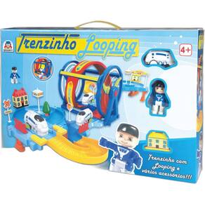Trenzinho movido a pilha, que passeia por uma incrível estação com looping.