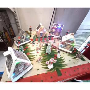 A vila inteira é iluminada com luzes LED brilhantes, criando um ambiente acolhedor e festivo. As luzes são estrategicamente colocadas para destacar cada detalhe da decoração.