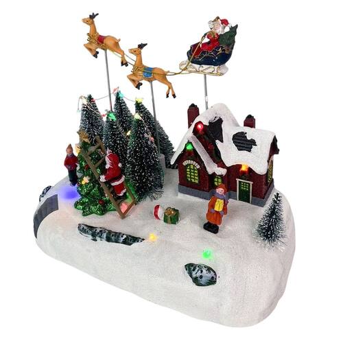 O Cenario Vila Natalina Musical Natal Iluminado, possui movimento no trenó do Papai Noel, perfeito para encantar as crianças e toda a sua família.