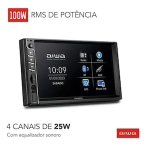 Especificações: Cor: Preta Potência: 100W RMS (4 x 25W) Tela: 7"" HD Touch Screen (1024 x 600 pixels) Conectividade: Bluetooth 5.0, USB, Auxiliar, Cartão SD Funções: Mirror Connect (espelhamento via cabo USB) Steering Wheel Control (controle pelo volante) Hands Free (chamadas viva-voz) Equalizador com 5 modos: Padrão, Pop, Clássico, Rock e Jazz Iluminação dos botões com 8 opções de cores e 6 temas de fundo Compatível com formatos de áudio: MP3, WMA, AAC, OGG, WAV, FLAC Rádio FM com memória para até 18 estações Entrada para câmera de ré Dimensões: 10x18x9 (AxLxC)