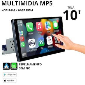 Central Multimitidia Mp5 Tela 10 Polegadas Rotativa 1 Din Octa Core 4+64GB Gps Multifuncao Car Play Android Auto - Central Multimídia MP5 1 Din com Tela de 10.1 Polegadas