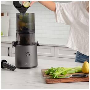 GRANDE CAPACIDADE A capacidade de dois litros 2 L permite que você insira pedaços inteiros de produtos de uma só vez, eliminando o trabalho de preparação. FÁCIL MONTAGEM E LIMPEZA Trado tudo em um e sem peneiras de suco criam menos peças, facilitando a montagem e a limpeza. VERSÁTIL Prepare vários sucos de frutas, sucos de vegetais, leites de nozes, sorvetes e muito mais. MODO DE DETECÇÃO AUTOMÁTICA Detecta a pressão dentro do espremedor para mover de frente para trás para desempenho ideal. RECURSO DE MEMÓRIA DE 60 SEGUNDOS Adicione mais ingredientes em 60 segundos e o recurso de memória do espremedor lembrará automaticamente a última rotação e operação usadas. Alcance seus objetivos nutricionais e de estilo de vida com este espremedor fácil de usar e fácil de limpar. O Omega Effortless Batch Juicer pode ajudá lo a obter o valor do seu dia de frutas e vegetais, criando deliciosos sucos frios. Nosso espremedor de fácil preparo possui um funil de mega lote com capacidade de dois litros 2 L, que permite inserir pedaços inteiros de produtos de uma só vez, eliminando o trabalho de preparação. A montagem e a limpeza são fáceis com o sem fim tudo em um e sem peneira de suco Além de sucos de frutas e vegetais, você também pode preparar leites de nozes, sorvetes e muito mais. O espremedor possui 150 watts para sucos em lotes silenciosos, de baixa velocidade e prensados a frio para extrair a quantidade máxima de vitaminas, nutrientes e suco. O modo de detecção automática detecta a pressão dentro do espremedor para mover de frente para trás para desempenho ideal. Adicione mais ingredientes em 60 segundos e o recurso de memória do espremedor recupera automaticamente a última rotação e operação usadas. O cronômetro para automaticamente após cinco minutos de extração. Quando você terminar de preparar seu suco, a limpeza é simples com menos peças e um cabo de alimentação destacável facilita o zenamento deste espremedor vertical