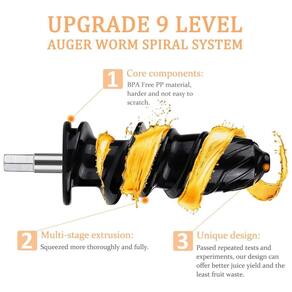Centrífuga de frutas com sistema espiral de 9 segmentos, filtro avançado, capacidade de 400ml, 2 velocidades e 150W de potência.Nº de velocidades