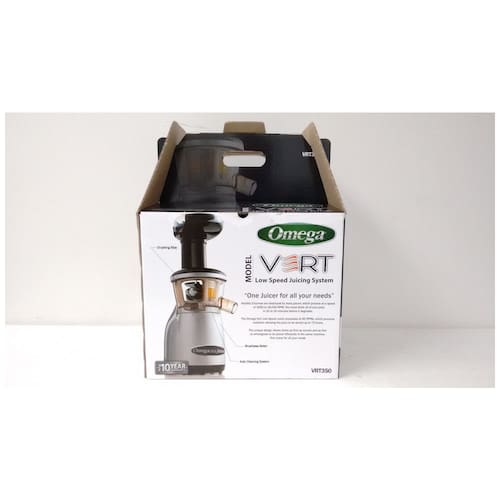 Funil e empurrador do espremedor vertical de dois estágios e sem fim vertical Omega VR30 é um produto revolucionário, pois apresenta a alta eficiência de um espremedor estilo mastigador em um design vertical. Às vezes chamado de espremedor de baixa velocidade, o VRT processa a 80 rpm, enquanto a maioria dos outros espremedores processa a uma velocidade de 1.650 a 15.000 rpm.