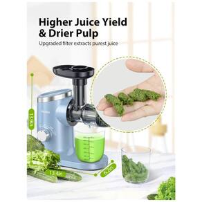 Além disso, a função reversa evita emperramento e torna a operação silenciosa, com menos de 60,0 DB. O design de desmontagem de um botão torna a limpeza fácil e rápida, sem problemas de desmontagem complicada. A separação de polpa de suco e a função reversa permitem que o bagaço seja separado do suco, fornecendo suco e vitaminas mais puros.