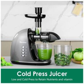 O espremedor de mastigação lenta Brecious apresenta tecnologia de prensagem lenta a frio, com motor potente e silencioso, e alto rendimento de suco de 90%, o que retém mais nutrientes e vitaminas. Com moagem de 7 trados atualizada para rendimento máximo de suco, oxidação mínima e retenção máxima de nutrientes, a máquina possui botões multifuncionais que correspondem a diferentes tipos de alimentos, permitindo escolher o modo de acordo com a dureza das frutas e vegetais para obter sucos de alto rendimento.