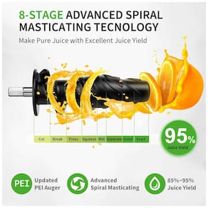 Centrífuga de Frutas YIOU SJ Black com 3 velocidades, silenciosa, motor de 150W, tecnologia de mastigação em espiral para preservar nutrientes, anel ajustável para diferentes texturas de suco.Nº de velocidades