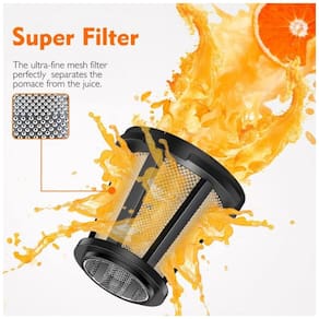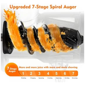 Centrífuga de Frutas com sistema espiral de 7 estágios, função reversa e alto rendimento. Possui chips de proteção inteligentes e desligamento automático a cada 20 minutos.