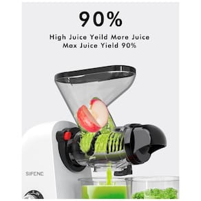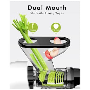 Característica especial: Tecnologia de prensagem a frio, mistura de suco com tampa de suco inteligente, suco ininterrupto, sem obstruções com função reversa, design compacto, motor silencioso, espremedor lento de 2ª edição com rampas de alimentação duplas